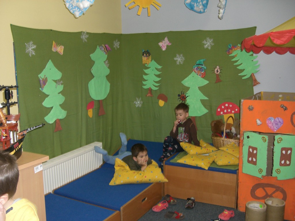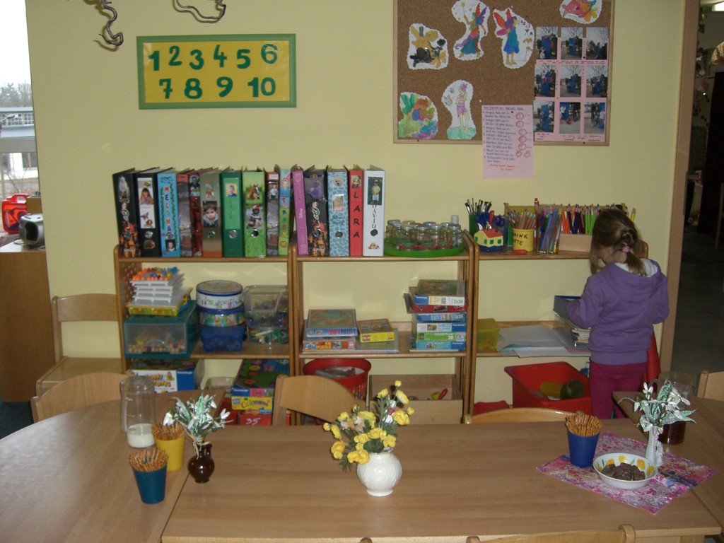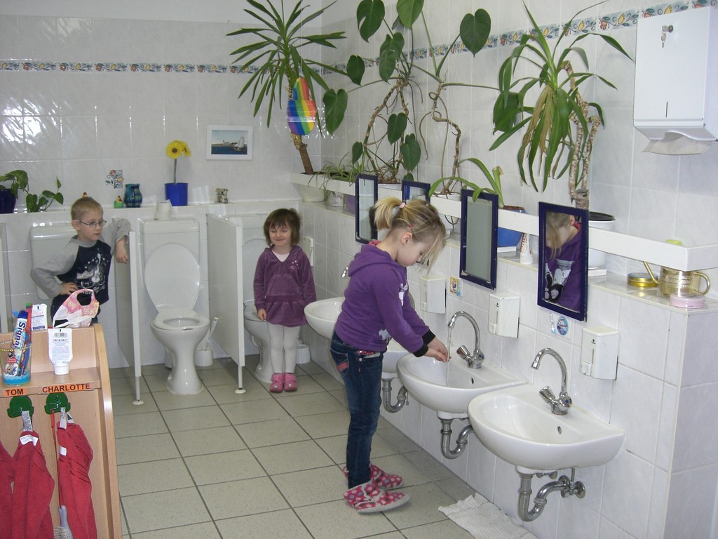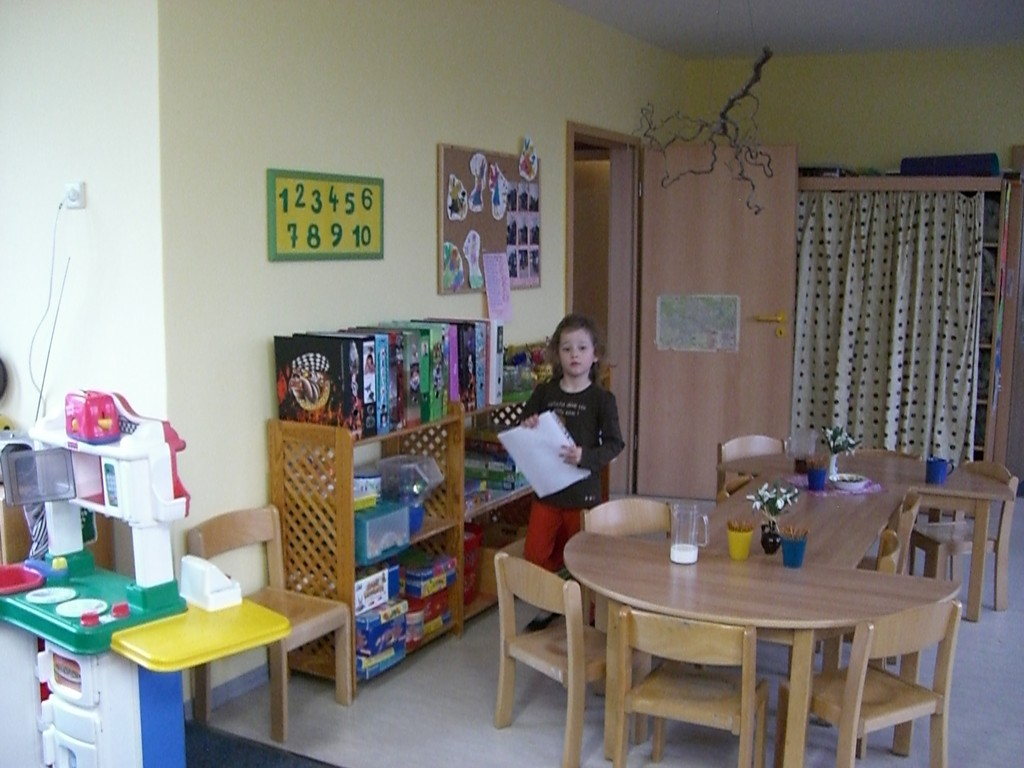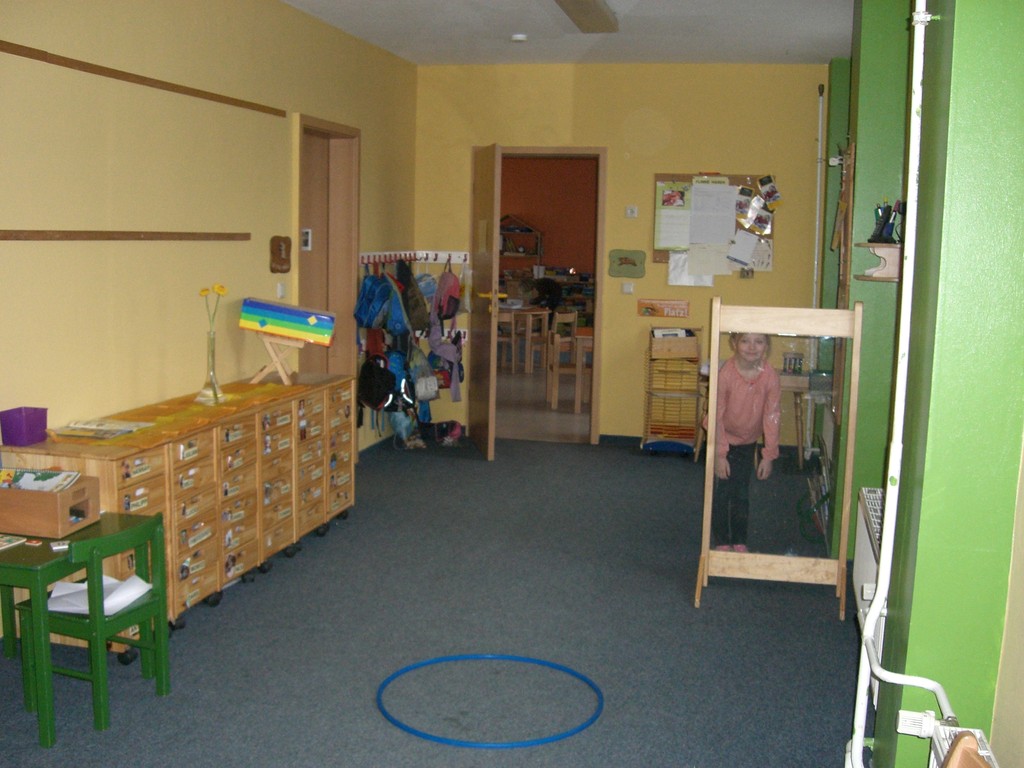 Unsere Räume setzen sich zusammen aus 3 Gruppeneinheiten, mit jeweils 2 Gruppenräumen, einem gemeinsamen Vorraum und Waschraum.