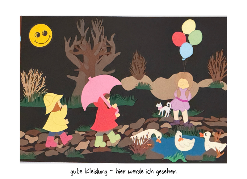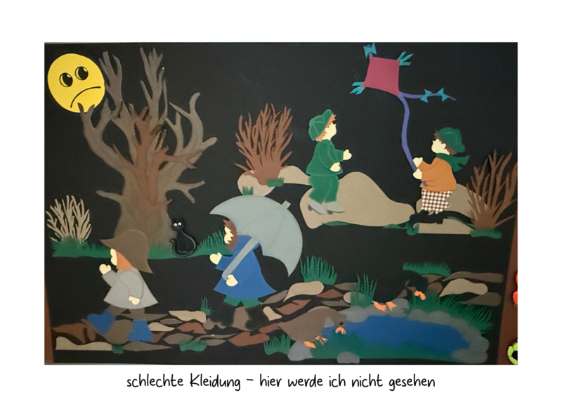 Auch das Thema Sichtbarkeit im Straßenverkehr wurde aufgegriffen. Die Kinder haben Poster betrachtet, die zeigten, welche Kleidung bei Dunkelheit gut sichtbar ist – und welche nicht. Diese Materialien wurden von der Verkehrswacht zur Verfügung gestellt und waren wirklich anschaulich und sinnvoll.