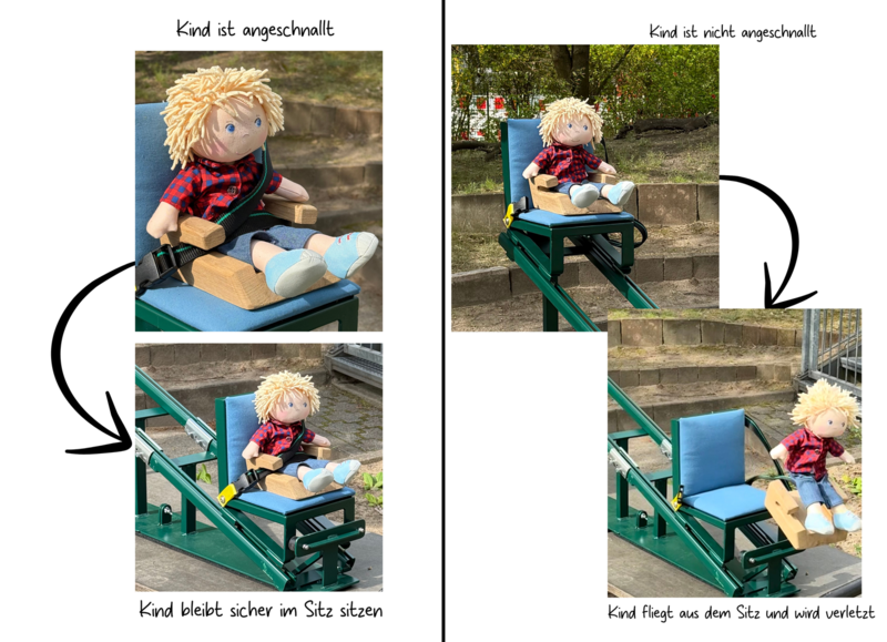 Ein besonderes Highlight war der Sicherheitsversuch mit der Puppe „Peter“: einmal war Peter angeschnallt, einmal nicht – die Kinder konnten dabei direkt beobachten, wie wichtig der Gurt im Auto ist, um Verletzungen zu vermeiden.