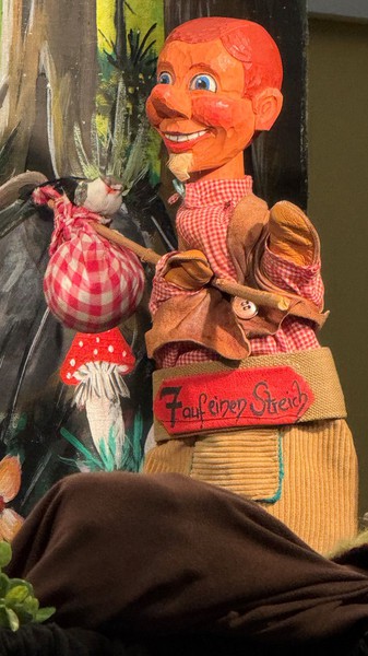 Die größeren Kinder durften sich über das Puppentheater „Das tapfere Schneiderlein“ freuen. Das Stück wurde in fünf Akten präsentiert, was von den Kindern sehr gut aufgenommen wurde. Gemeinsam mit dem Schneiderlein begaben sich die Kinder auf eine abenteuerliche Reise: Wildschweine und Einhörner mussten gefangen und sogar zwei Riesen besiegt werden. Die Geschichte vermittelte dabei auf schöne Weise, dass man mit Mut und Fantasie oft weiterkommt als nur mit Muskelkraft. Die kindgerechte Aufteilung des Stücks sorgte dafür, dass die Aufmerksamkeit der Kinder durchgehend erhalten blieb.
